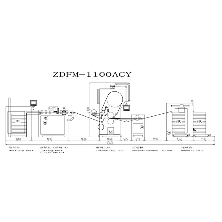 ZDFM-ACY-Lösung: Die Pulverentfernungseinheit unserer automatischen Kettenmesser-Pulverentfernungs-Laminiermaschine stellt sicher, dass die beschichtete Oberfläche kristallklar und frei von Mängeln ist; Die Kettenmessereinheit sorgt dafür, dass die dicke PET-Folie oder Metallfolienkante messerfein geschnitten wird.