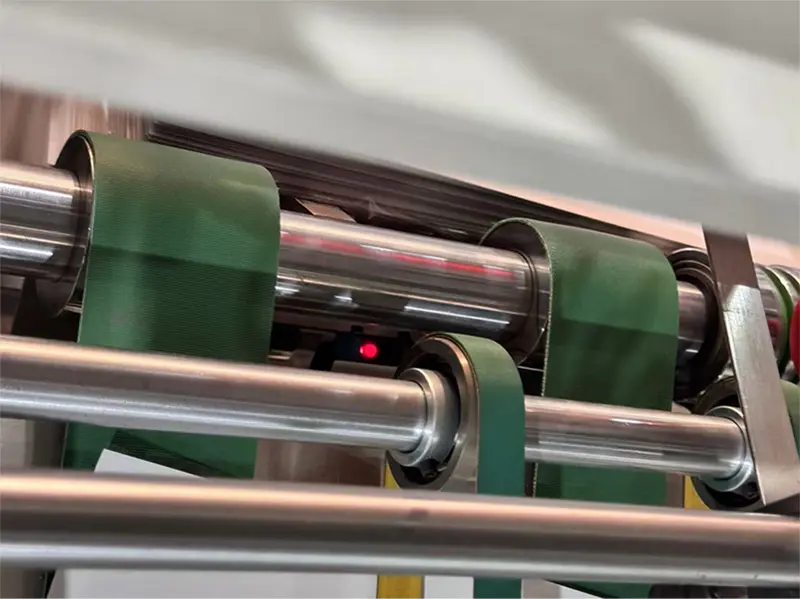 Elektrisches Induktionsauge, das die Länge des Papiers erfasst. Wenn sich die Länge des Papiers ändert, beschleunigt sich das Band, und die Ablenkplatte der Aufwickelmaschine kippt um und wirft das Papier heraus.